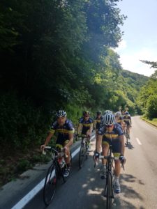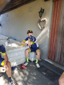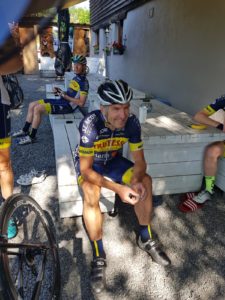 In de eerste 20 kilometer werd even de rangorde bepaalt waarna we in een stevig tempo de overige (klim)kilometers wegtikten. Onderweg met korting bijtanken op het terras met cola en het bijvullen van de bidons.