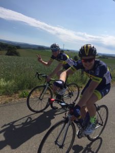 Op 40 kilometer van de eindstreep een klapband van Pim maar zonder erg. Vanwege het slechte wegdek hier en daar was het van de buitenband kapot. Met de middelen die we voorhanden hadden werd dit zo goed als het kon gerepareerd door Dick. Helaas was het na 20 kilometer toch einde verhaal en werd Pim opgehaald door Leon. Na aankomst douchen en aanschuiven voor een heerlijke pasta maaltijd met voor- en nagerecht.